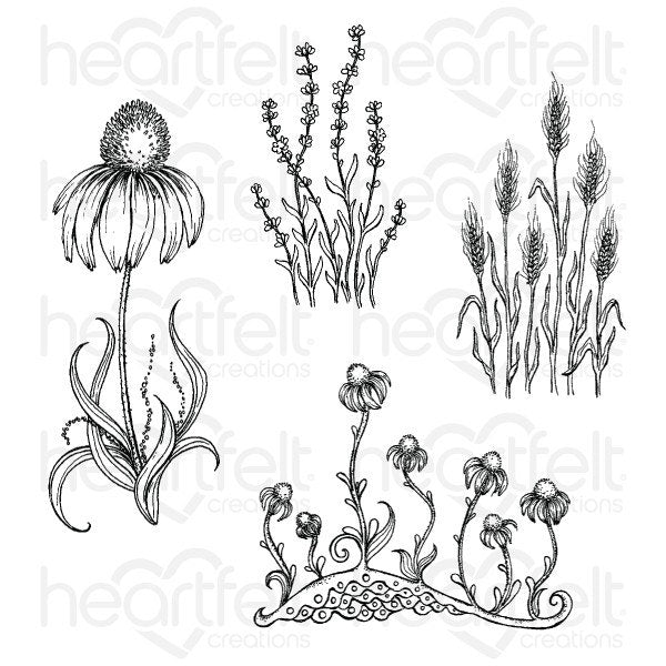 Filled with a multitude of creative options, the Backyard Blossoms Cling Stamp Set is ideal for “growing” your own style of backyard garden! Perfect for creating a meadow like wildflower scene, or a more composed perennial type border, the delightful ornamental grasses, delicate floral accents and hardy coneflowers found within this assembling of cling stamps will provide you with an array of garden themed looks perfect for card fronts, altered art pieces and scrapbook layouts!