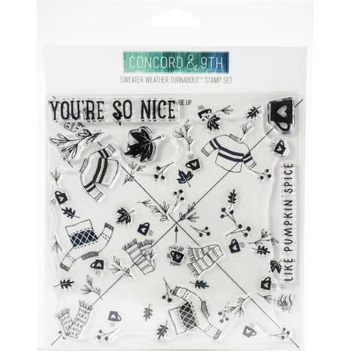 Add wonderful images and phrases to cards and more with these clear stamps! This package contains Sweater Weather Turnabout: a set of seven clear stamps on one 6x6 inch backing sheet. WARNING: Choking Hazard- small parts. Not for children under 3 years. Made in USA.