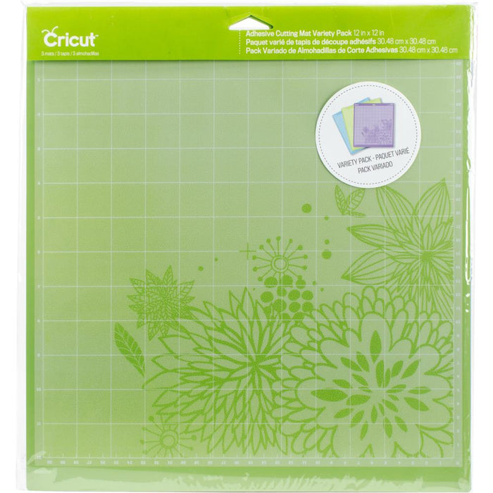 Provo Craft-Cricut Adhesive Back Cutting Mats: Green, Blue And Purple. Each of the three mats has been customized to match the weight of commonly used crafting materials. Each has just the right level of grip to not only hold your material firmly in place during use but also allow you to easily remove the material from the adhesive surface. This package contains three 12x12 inch cutting mats. Made in USA.