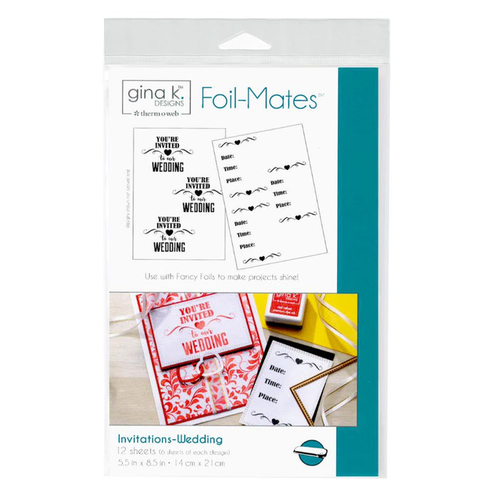 Click to expand Tap to zoom Gina K Designs Foil-Mates Invitations 5.5"X8.5" 12/Pkg - Wedding by Therm-O-Web Save 0% $10.50 1 2 3 4 5 6 7 8 9 10+ Quantity Quantity Add to cart This item is a recurring or deferred purchase. By continuing, I agree to the cancellation policy and authorize you to charge my payment method at the prices, frequency and dates listed on this page until my order is fulfilled or I cancel, if permitted. Thermoweb-Gina K Designs Foil-Mates sentiments: Wedding. These are the perfect addition to your next paper crafting project. This package contains twelve 8-1/2x5-1/2 inch foil mate sentiments in assorted designs. Made in USA.