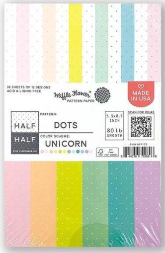 Half Dots/Unicorn - Waffle Flower 80lb Single-Sided Paper Pad 5.5"X8.5" 36/Pkg